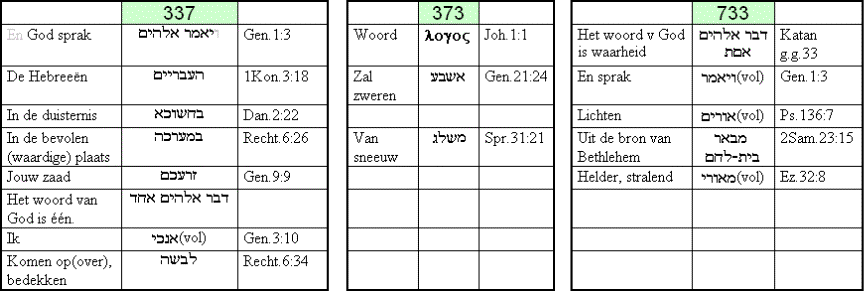 337 373 733 ‘God sprak’---‘Woord’---‘het woord van God is waarheid’