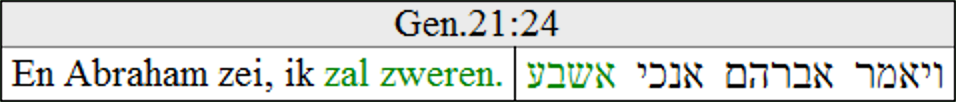 onze God= Het laatste woord van Gen.21:24 wijst ook naar de Waarheid van het Woord. Daar zegt Abraham: Ik zal zweren. ‘Zal zweren’ heeft dezelfde getallenwaarde als het woord logos, λογος, ‘Woord’, het woord dat waarheid is: Zal