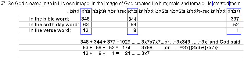 turns out to be the first word of Gen.1:27: ‘and created’,