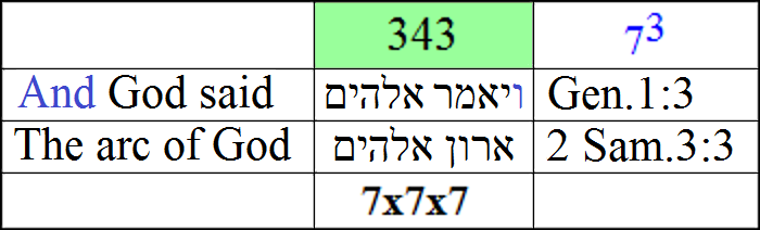 The three as well the seven have an important symbolic meaning in the bible. The bible writer seems again and again to make the connection between the 3 and the 7, not only arithmetically but also optical. For by adding them together the numbers 37 and 73 occur (factors of Gen.1:1). The word truth with the number value 441 is also related with these two ciphers. For 441 is 21x21 or (3x7)x(7x3) The factors of truth have a clear optical relationship with the factors of Gen.1:1. (37x73) The