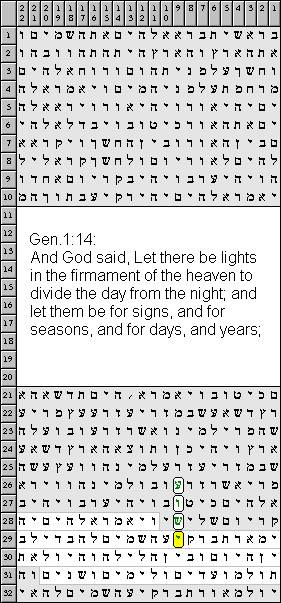 Jesus Christ. The code starts on letter 625 in Gen.1:14, and in the verse on the