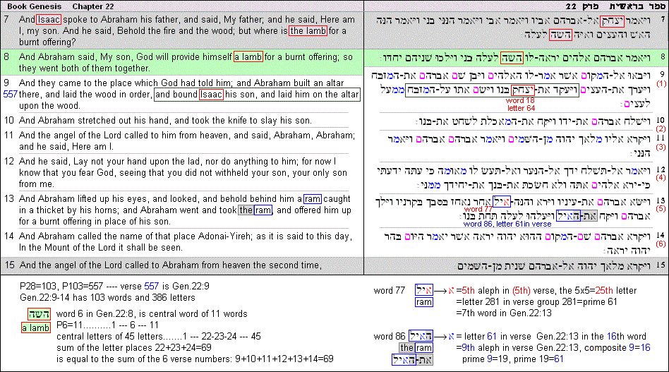 Het woord Izaäk begint op de 64ste letter van deze vers groep. De 4de priem van