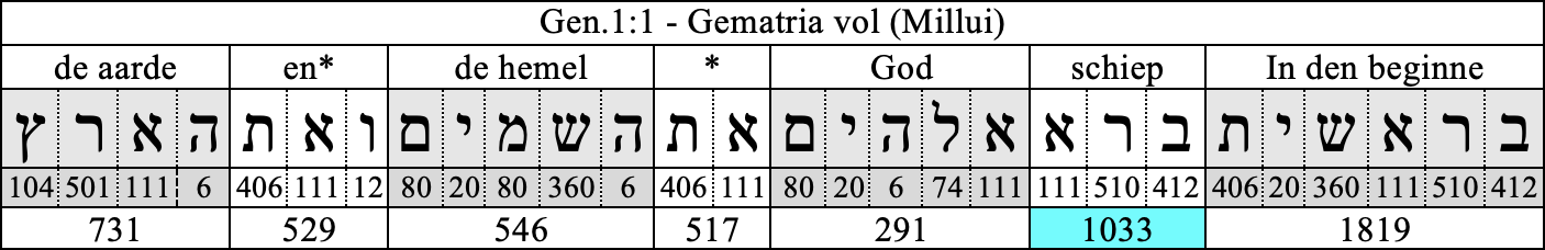 letters is dit patroon ook aanwezig. (gematria Millui: a=alef,