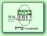 In this order these letters have no meaning, but when we place them in the order (7-8)(5-6) or 78-56, than we find the word 'birith' which means covenant. Pay attention, the writing direction in Hebrew is from right to left: