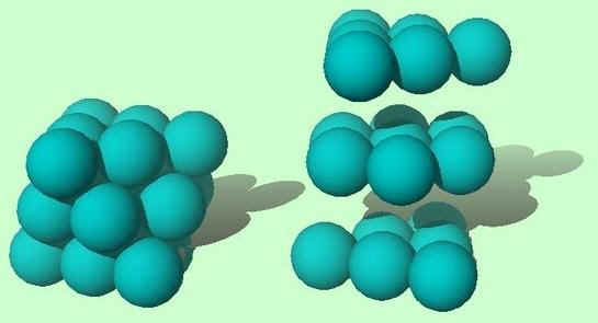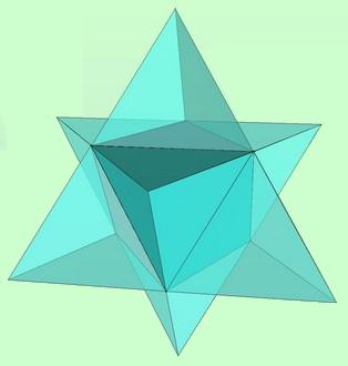 De figuur die zo ontstaat is een 8-vlak en heeft 19 éénheden. Op ieder van die acht vlakken kunnen we weer een 3D driehoek aanbrengen die uit vier éénheden bestaat. Er worden dus 8x4=32 éénheden toegevoegd. De volgende figuur heeft dan 19+32=51 éénheden: