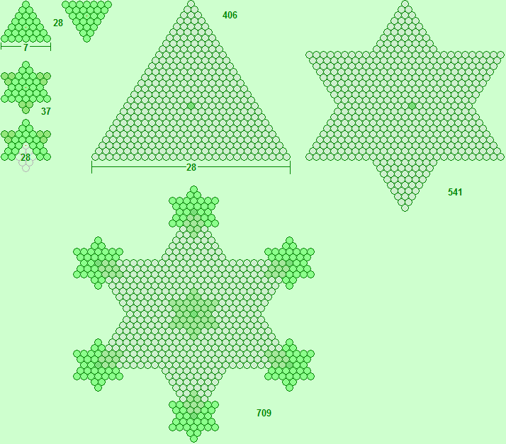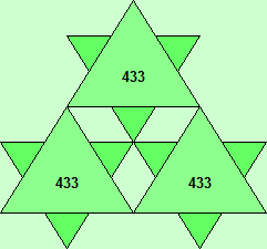 Dit vers verdeelt de 27 verzen van hoofdstuk 17 in 22 en 5 verzen, net zoals het alfabet is verdeeld. In de eerste 22 verzen spreekt God met Abraham en in de laatste vijf verzen is God vertrokken en Abraham doet wat God hem in Gen.17:10 heeft gevraagd te doen: zichzelf en de zijnen besnijden. De getallenwaarde van vers 22 is 1299. Dit getal is afgeleid van 243. Als we de getallen 2.4.3 tot de vijfde macht verheffen (ik doe dit omdat de 5 aan de naam van Abram wordt toegevoegd) dan vinden we: 243.....25+45+35=32+1024+243=1299. In factoren 3x433. Maar we zullen ons moeten realiseren dat de getallen met dezelfde cijfers 234, 324, 342, 432 en 423 hetzelfde resultaat opleveren bij deze aanpak. Het getal 433 is een hexagram getal. Gen.17:22 Het getal 433 is interessant want het is priem 85 of 5x17, een inmiddels bekende combinatie van getallen denk ik. Gen.17:22 heeft 7 woorden en 28 letters net zoals Gen.1:1. Deze getallen geven een indicatie hoe we de volgende vijf verzen moeten benaderen. De som van die versnummers is 23+24+25+26+27=125 of 53 en is gerelateerd aan 35, het CV van Abram. De gematria van die vijf verzen is: 7963 +3548 +3819 +1169 +3353 =19852 of 28x709 Nu hebben we de gegevens om een mathematische afbeelding van die vijf verzen te maken. De driehoek van 7 is 28. Met deze driehoek kunnen we de Davidsster maken met 37 éénheden. De 28 éénheden van de driehoek van 7 zijn de basis van de grote driehoek met 406 éénheden. Met deze driehoek maken we de Ster van Israël (541) Vervolgens voegen we aan ieder van de zes punten een ster met 37 éénheden toe. Hiervan vallen 6x9 éénheden met de punten van de grote ster samen. In feite voegen we slechts 6x28 éénheden toe. Het totaal aantal éénheden in de 'sneeuwvlok' is: 541+(6x28)=541+168=709.