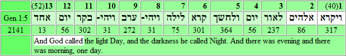 first two words of Gen.1:5: and God